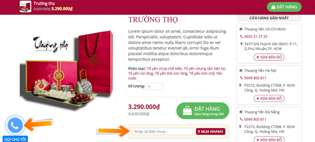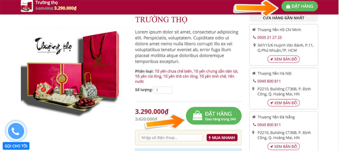 Cách 2: Đặt mua hàng online trên website thuongyen.com: