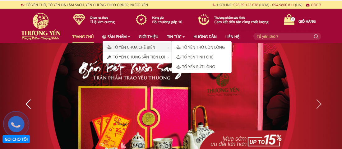 + Sử dụng menu sản phẩm của website: chọn loại sản phẩm muốn mua là tổ yến thô còn lông, tổ yến tinh chế, tổ yến rút lông hay tổ yến chưng sẵn tiện lợi…